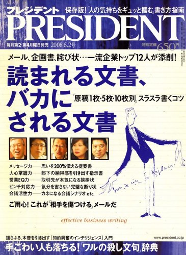 「PRESIDENT」2008年6月2日号 特集: 読まれる文書、バカにされる文書記事ページ 発行: 2008年05月17日