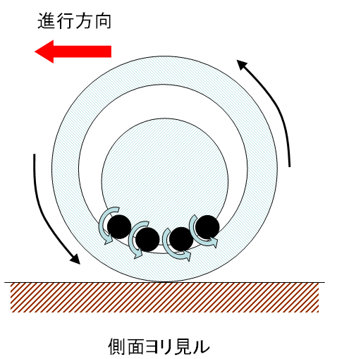 装甲をタイヤ替わりにし、自転して推進する方法である。内部はすべて「タイヤ」の