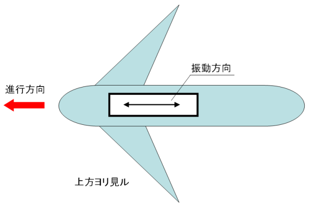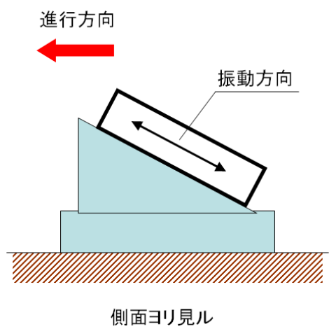 鉛直斜め方向に振動を起こす。これにより、斜め上方向と斜め下方向に交互に慣性力