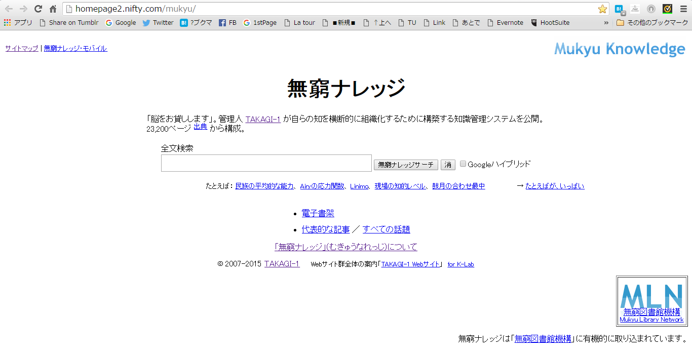 2016年 9月29日 15:00 2016年11月10日 15:00 (延長されました)をもって、@nifty のホームページサービス「@homepage」が終了するのに伴い、 http://homepage2.nifty.com/mukyu/ は、終了します。各コンテンツは、http://takagi1.net/ 内に移転します。