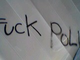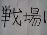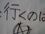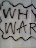 「落書きコーナー (自由に落書きをしてもいい、というような文面 詳細失念) WHY WAR 税金を払うのは誰? 戦場に行くのは誰? FUCK POLICE」