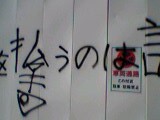 京都大学本部講、法経総合研究棟西側壁において視認。黒スプレーに加え、赤・黄色スプレー。