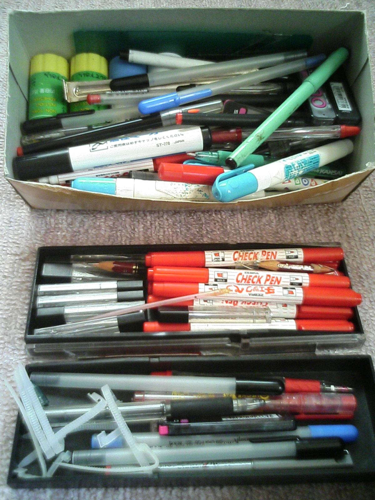 中学・高校時代に使った文具品の英霊です。私の勉学のため、身を削り、血を流して働いてくれました。