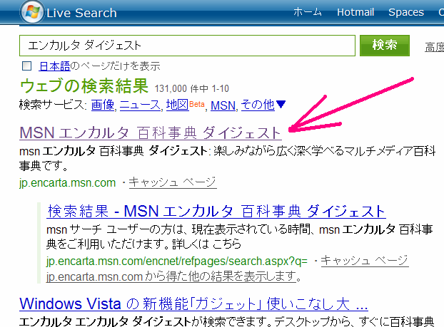 「MSNエンカルタ百科事典ダイジェスト」は、2時間無料で利用できます。2時間を過ぎると次のように表示されます。