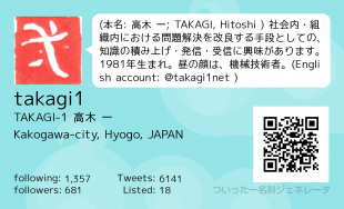 Facebookページ: 知的ネット社会の形成 / 高木 一(TAKAGI-1, Hitoshi Takagi)